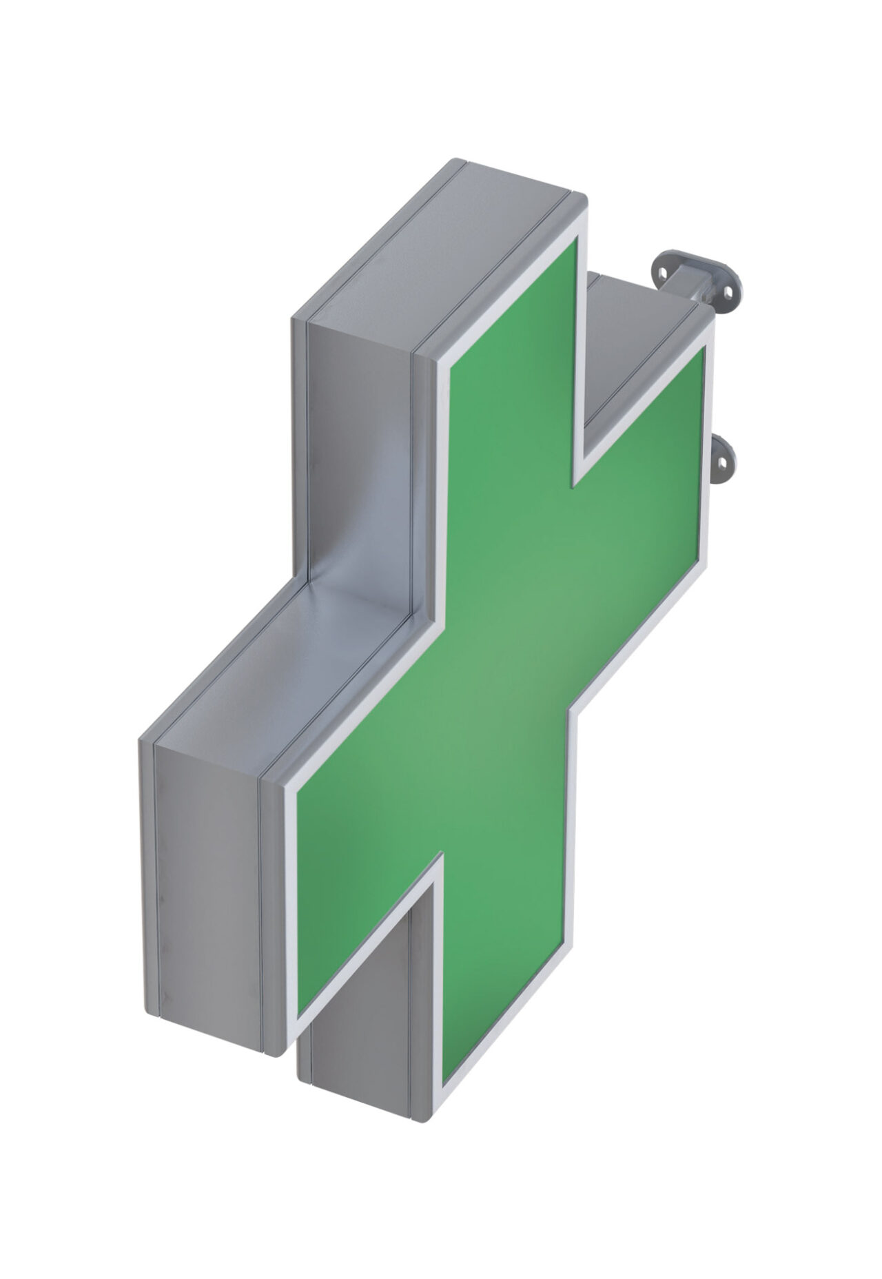 CROCE FARMACIA bifacciale a frontali piatti realizzata con profilo in alluminio. Disponibile in due spessori:
